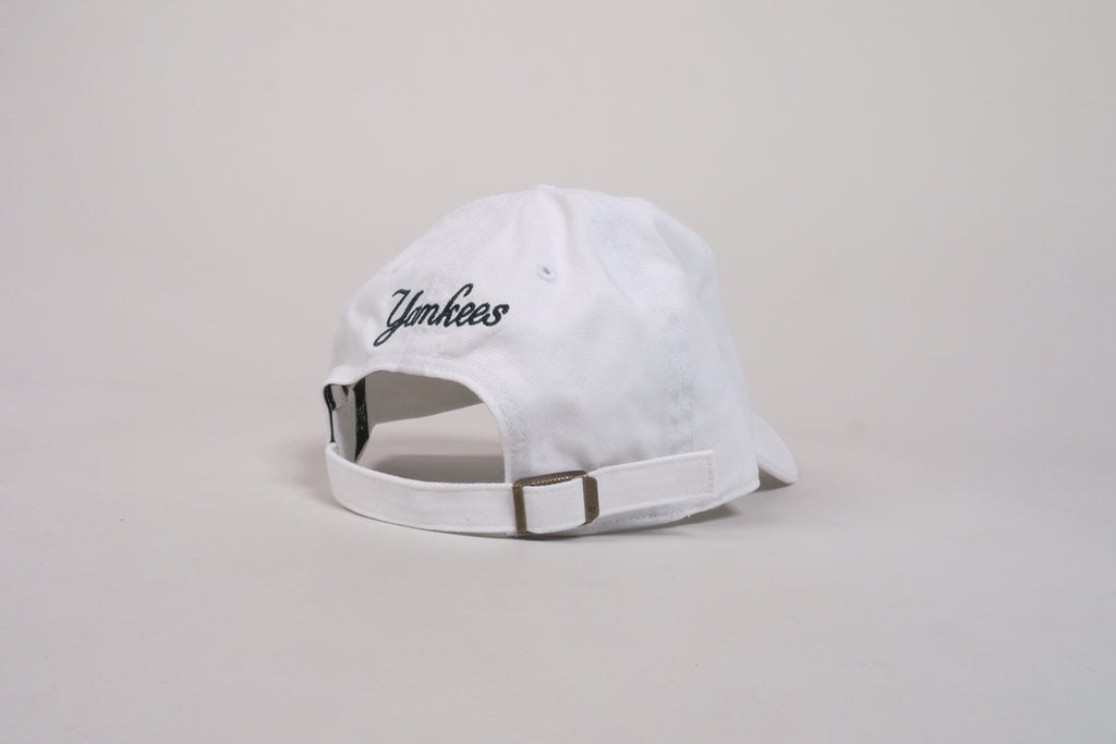 Jetzt auch mit kleinem, dezenteren Logo. Die New York Yankees Team-Cap in weiß aus dem Hause 47 Brand. Kommt in der Clean-Up Version (mit Verstellverschluss hinten) und im klassischen Dad-Cap bzw. Curved-Cap Style.