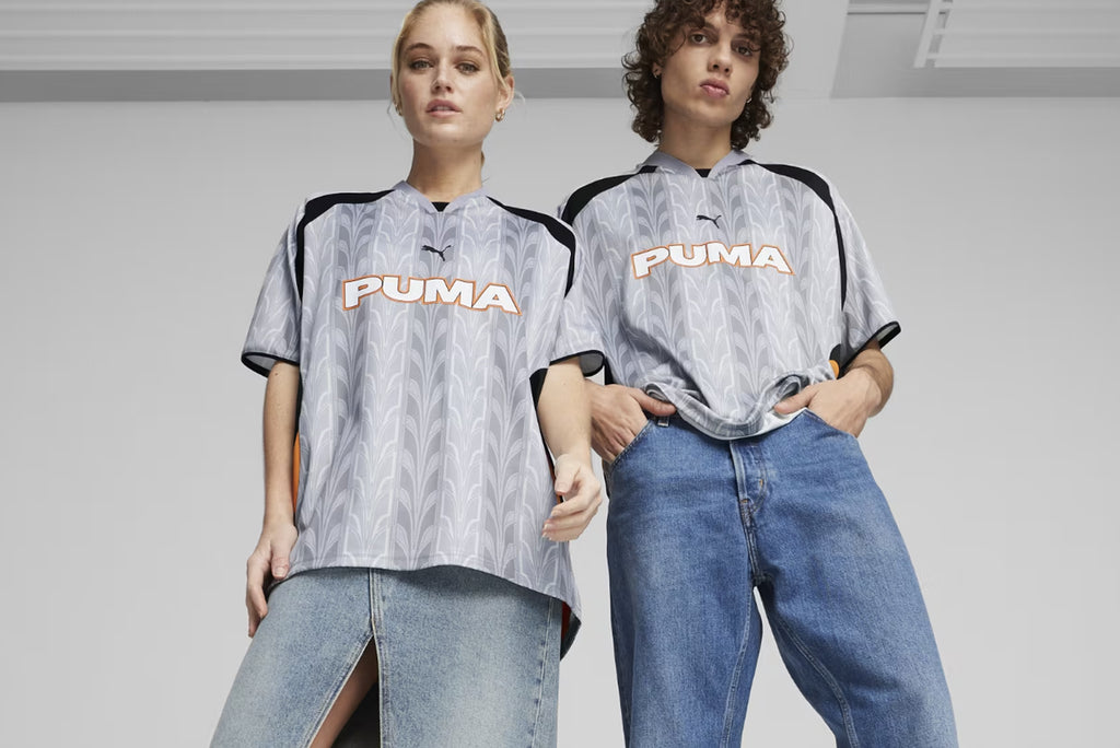 Puma "Football Jersey" aus der Palermo Kollektion. Das Trikot ist mit einem Design aus den Fußballarchiven versehen. Das Teil besteht aus einem Material mit der proprietären feuchtigkeitsableitenden Technologie von Puma und wurde aus recyceltem Polyester hergestellt.