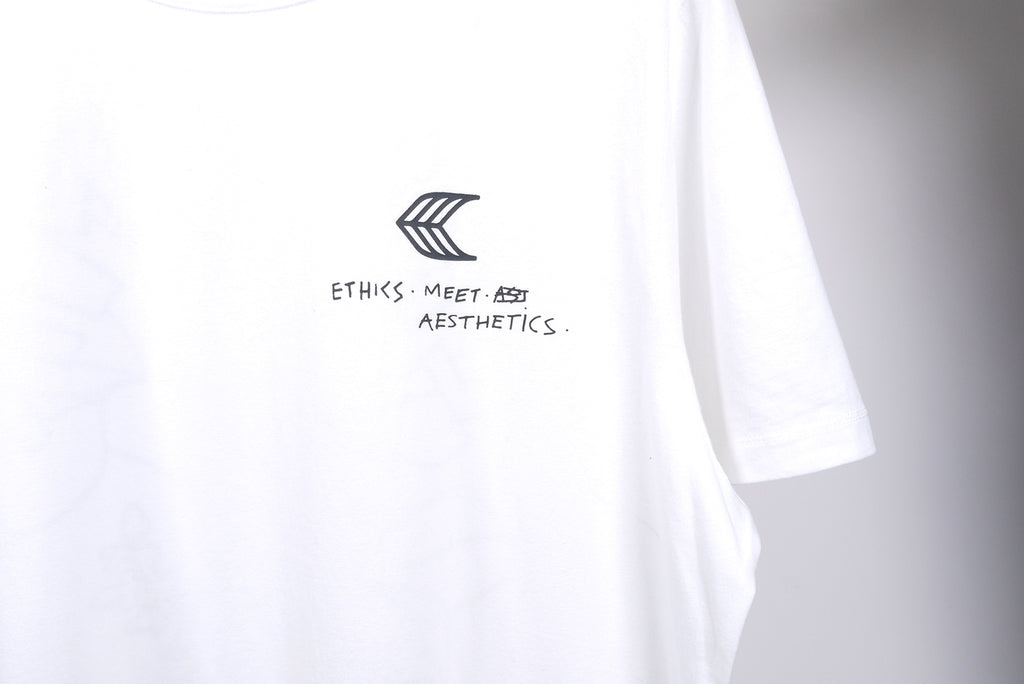 Cariuma "Rubber Tree" T-Shirt in weiß mit Front- und Backprint. Hergestellt aus 100 % Bio-Baumwolle für ein superweiches Tragegefühl.