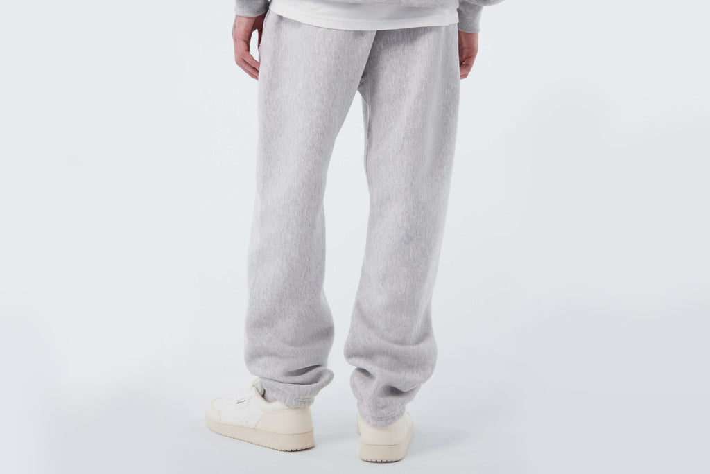 Basic Champion Jogginghose in grau meliert. Kommt aus 400g Soft Fleece und einem modernen leichten oversized fit.