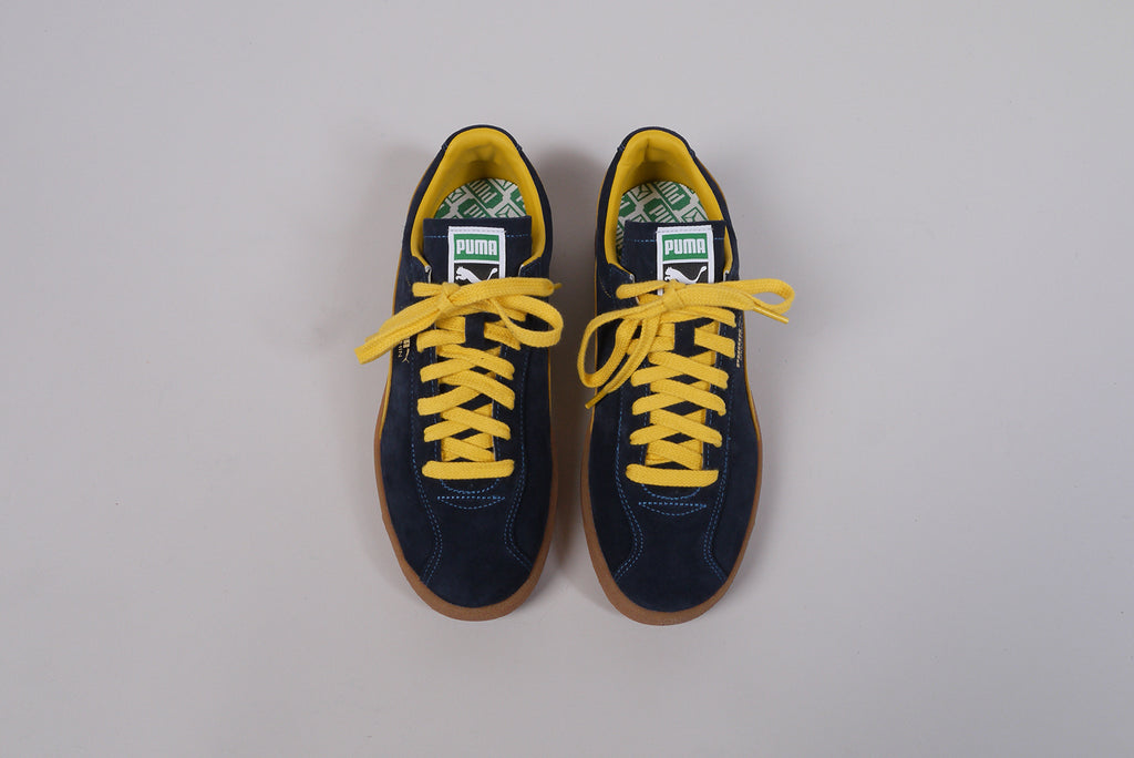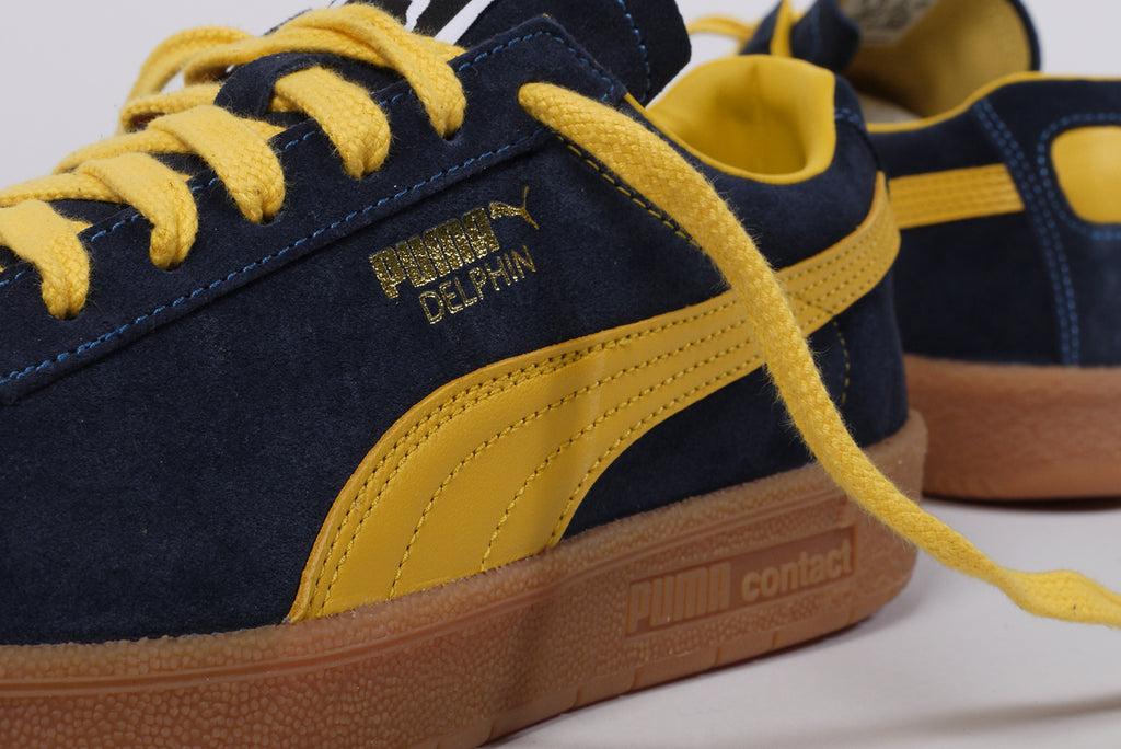 Der Puma "Delphin OG" in new-navy. Mit dem Delphin OG bringt Puma den Schuh mit seinen ursprünglichen Spezifikationen und Farben mit einem Obermaterial aus Wildleder und einem Formstreifen aus Leder zurück.