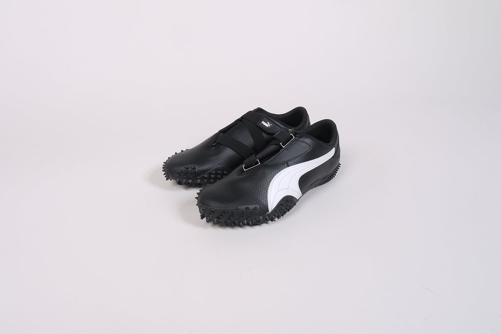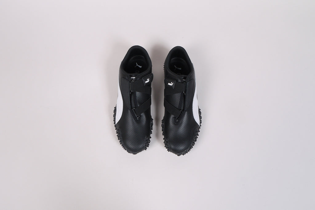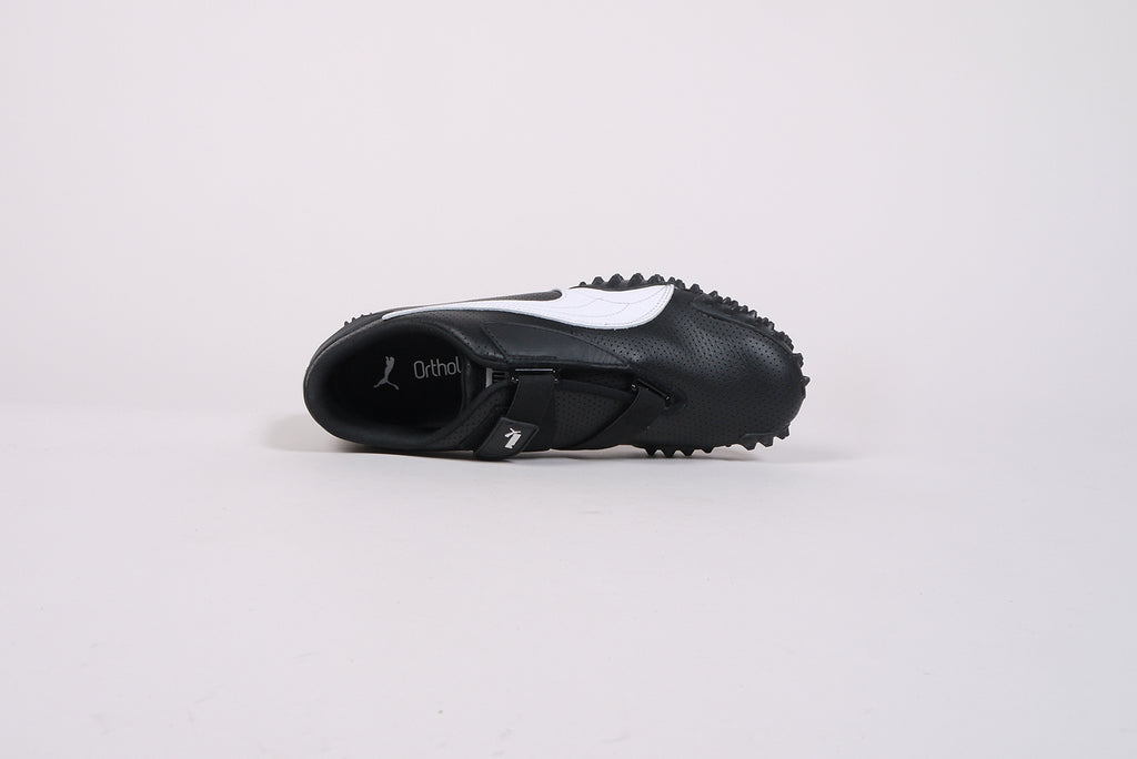 Puma Mostro - für das Upper setzt Puma bei dieser Variante auf hochwertiges, perforiertes Leder in zwei monochronen Colorways. Der Mostro verdankt seinen Namen dem italienischen Wort für Monster, eine Anlehnung an den neuen, hybriden Look des Schuhs. Für diesen ließ sich Puma unter Anderem von den schnittigen Sprint-Spikes der 60er Jahre inspirieren.