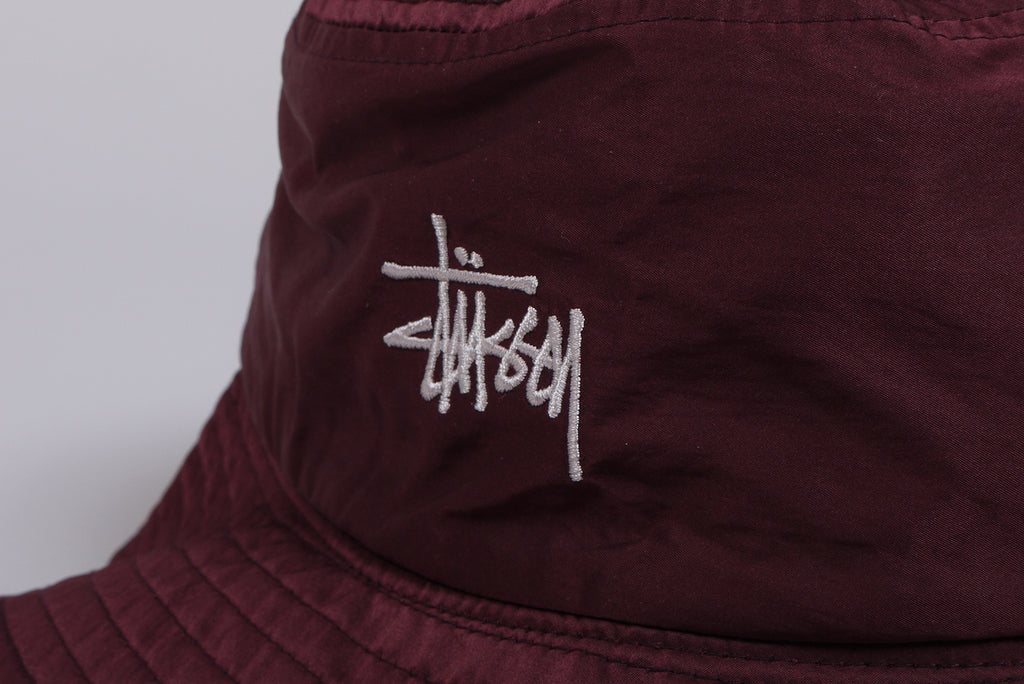 Stussy "Reversible" Bucket Hat in lila. Dreht man den Hut um, verwandelt er sich in einen schwarzen Fischerhut.