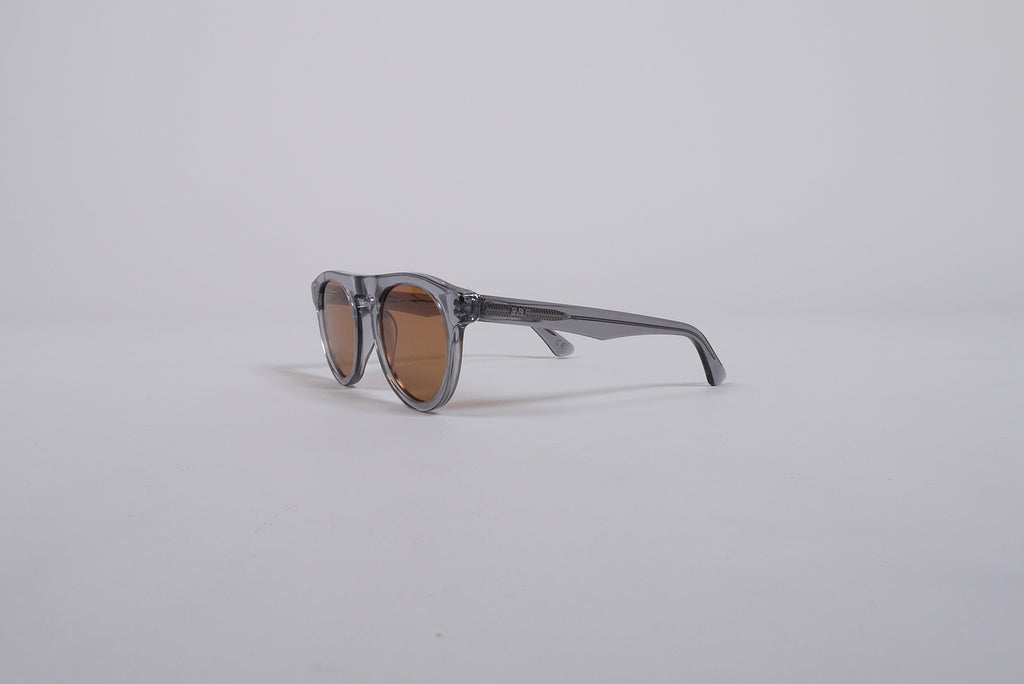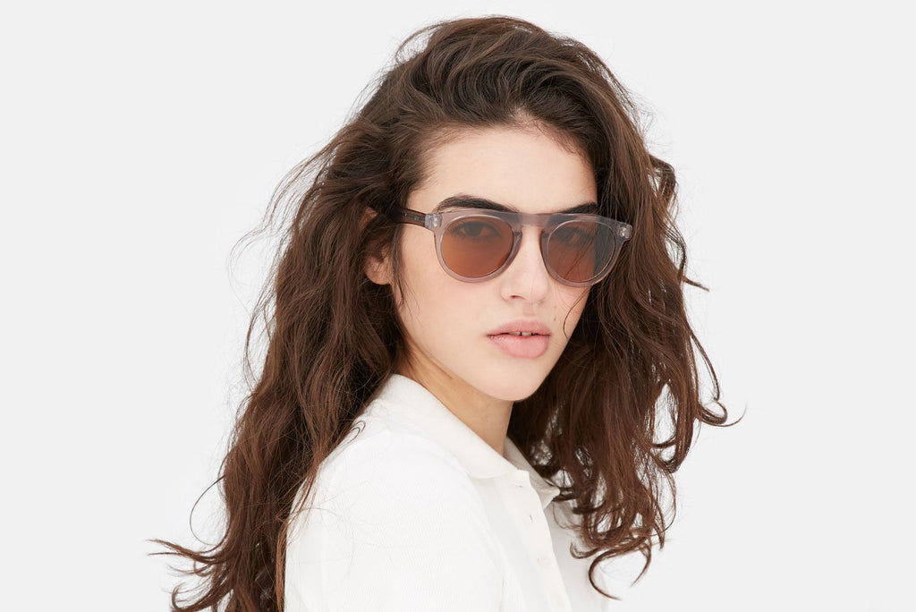 Die Sonnenbrille "Racer" in transparent aus dem Hause Retrosuperfuture. Die Box enthält eine halbharte Lederhülle und ein Reinigungstuch.