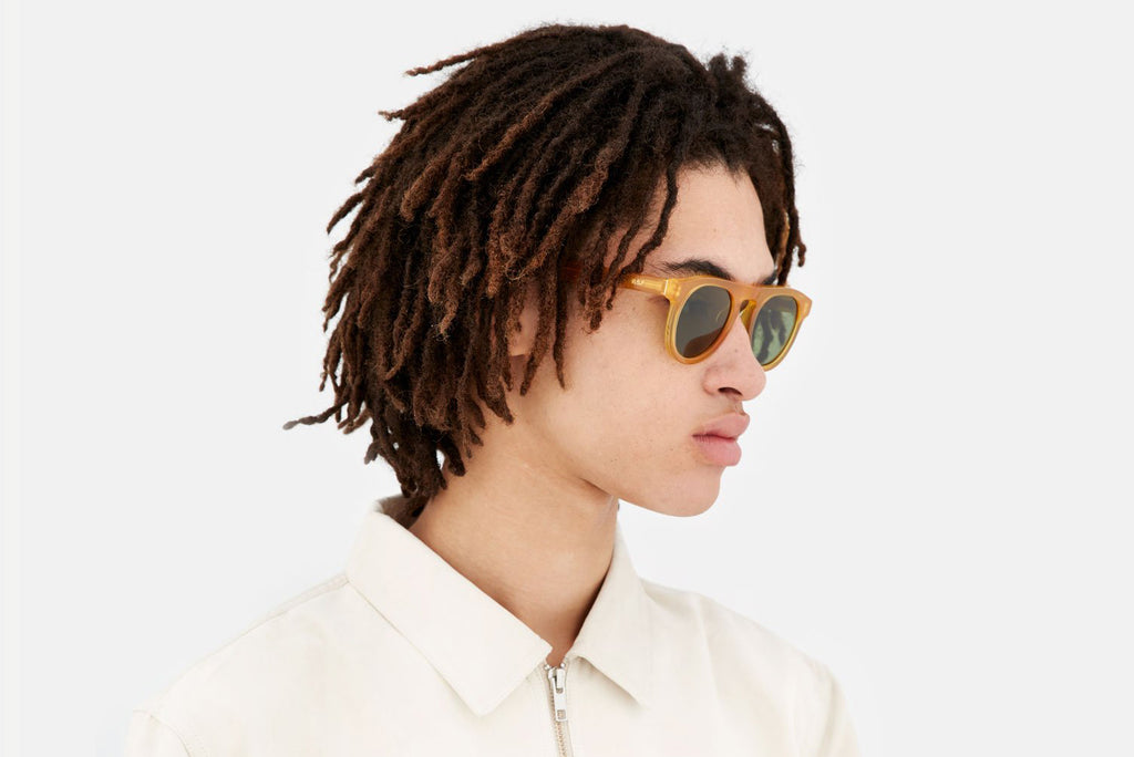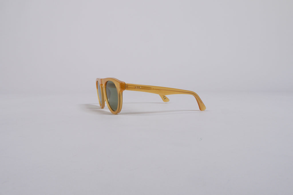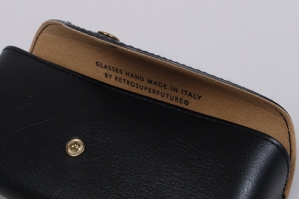 Die "Racer Sereno" Sonnenbrille aus dem Hause Retrosuperfuture. Die Linsen sind aus gehärtetem Barberini-Glas für ein präzises, technisches Gefühl und eine präzise Funktion. Diese Version wird mit einem eleganten Bernsteinacetat und flaschengrünen Gläsern geliefert.. Die Box enthält eine halbharte Lederhülle und ein Reinigungstuch.