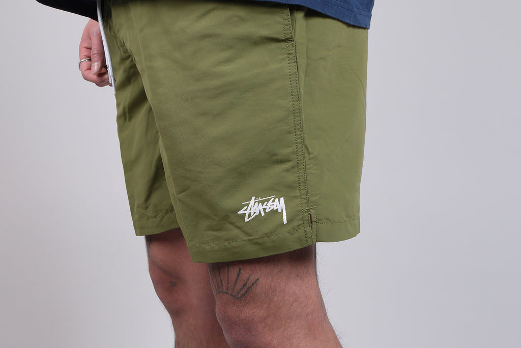 Stussy "Stock" Water Short in grün mit kleinem Stüssy Logo.