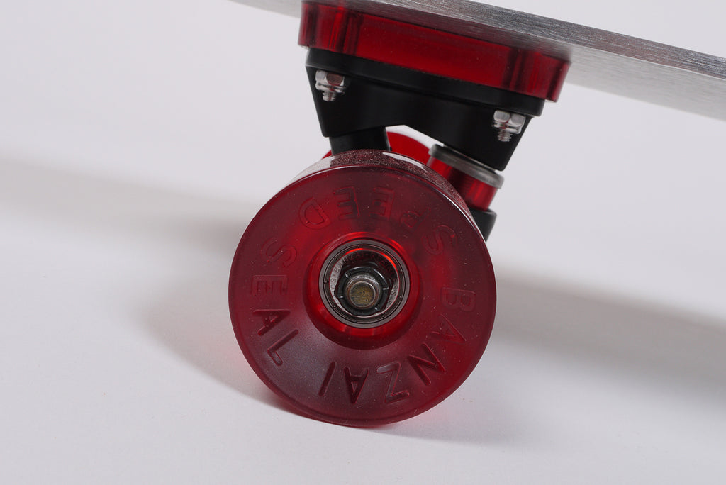 Ausgestattet mit dickeren, stossdämpfenden Riser Pads und einem Radstand ähnlich moderner Skateboards. Die speziell wärmebehandelte Aluminiumlegierung ermöglicht Stabilität und Kraftübertragung bei jeder Geschwindigkeit.