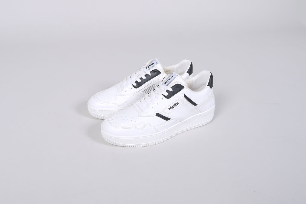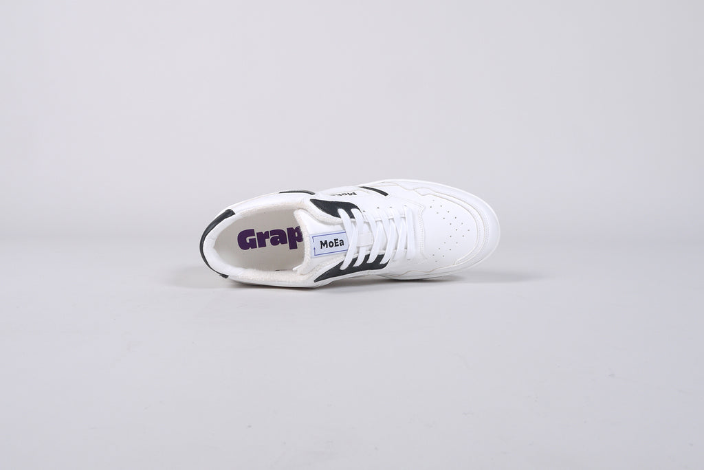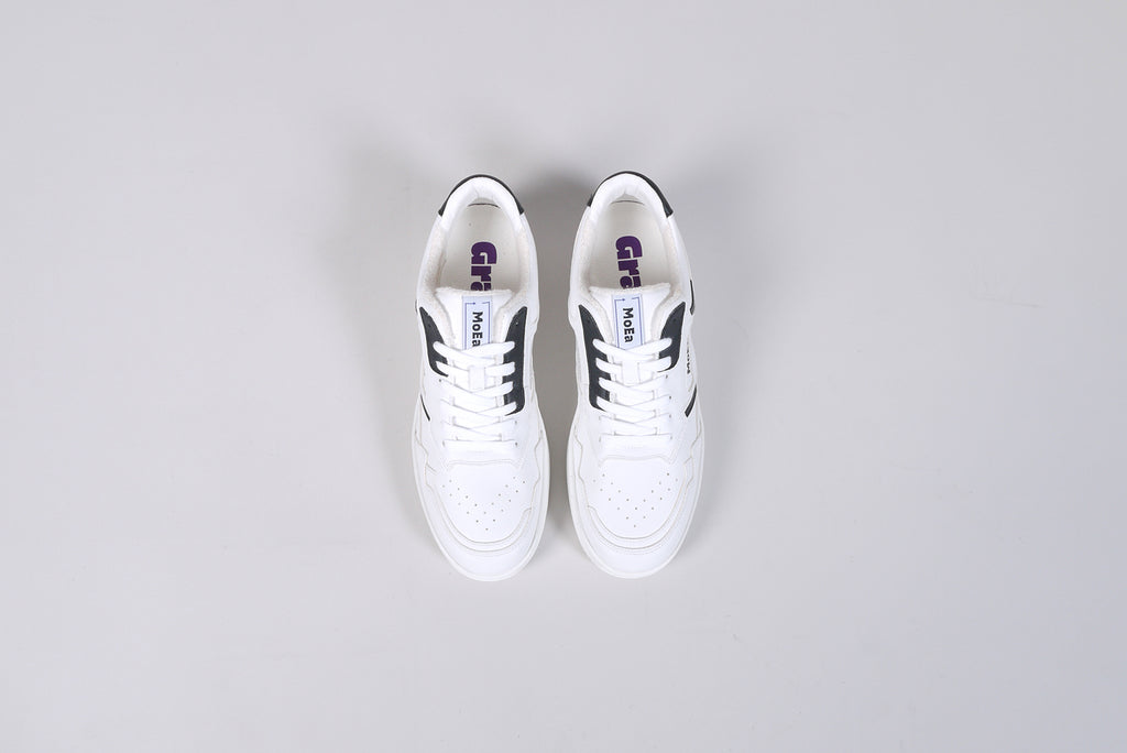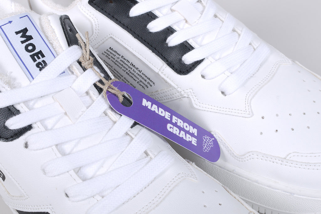 Der MoEa "GEN1" in white/black - ein äußerst widerstandsfähige, atmungsaktive und bequeme Turnschuhe aus GrapeSkin, einem kohlenstoffarmen und tierversuchsfreien innovativen Biomaterial. Erstklassig hergestellt in Portugal mit vollständig zertifizierten Materialien, ist der Grape-Stil eine modische Alternative zu destruktiven Leder- und Plastik-Sneakers.