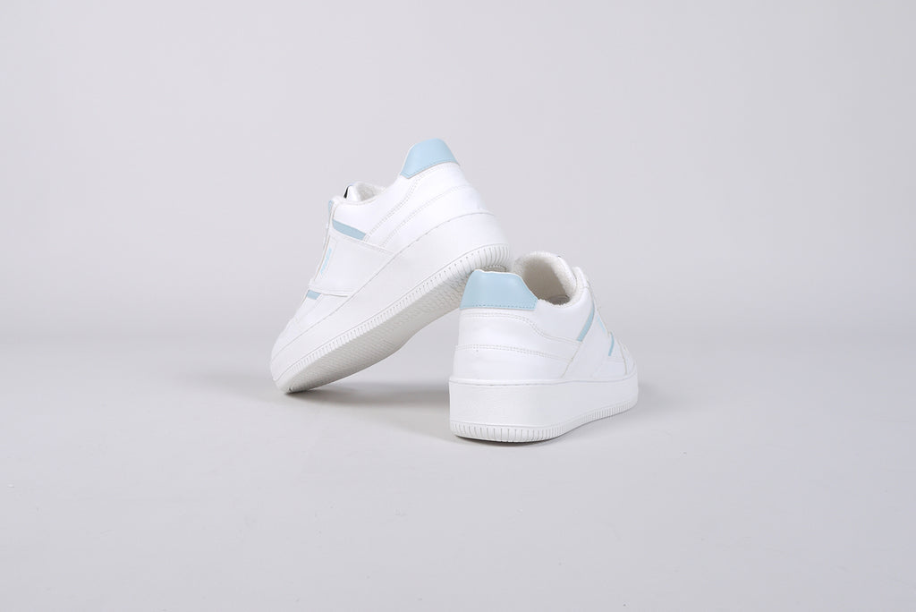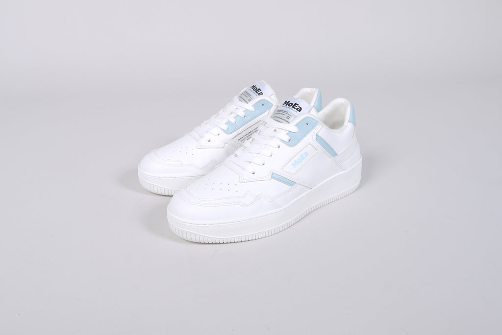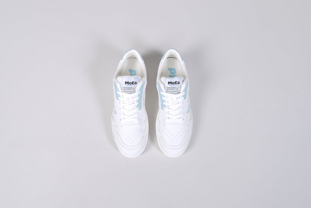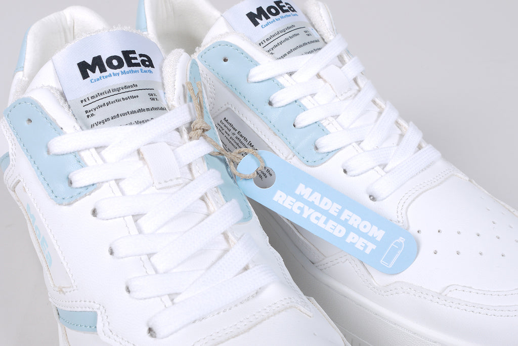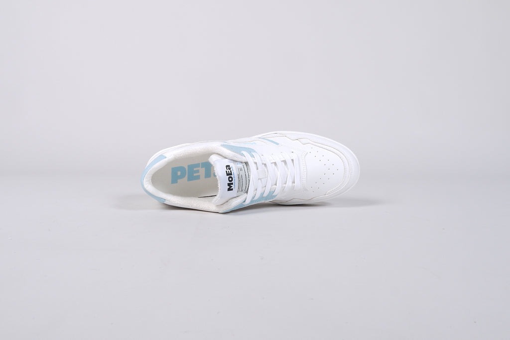 Der MoEa "GEN1" in white/sky blue - ein äußerst widerstandsfähige, atmungsaktive und bequeme Turnschuhe aus recyceltem PET. Erstklassig hergestellt in Portugal mit vollständig zertifizierten Materialien.