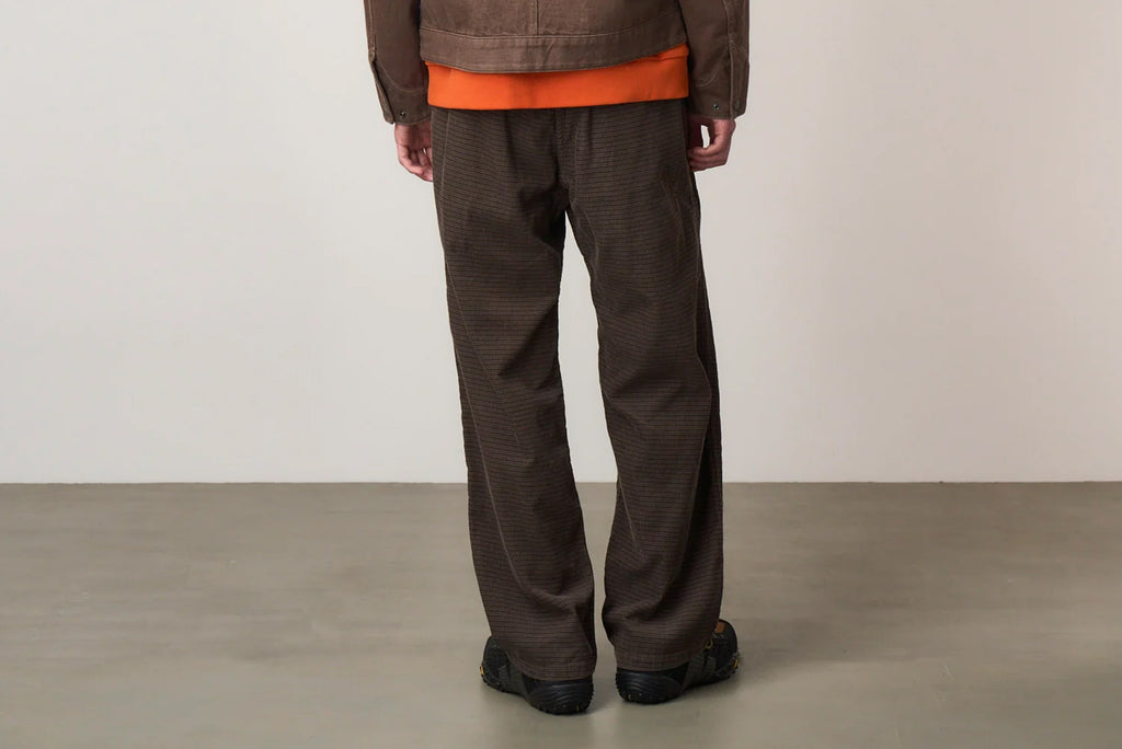 Die OG Grid Check Jam Pants basieren auf einer Vintage-Hose von Gramicci. Kommt mit Originaldetails wie dem durchgehenden Taillenverschluss (ohne Hosenschlitz) und einer einzelnen Gesäßtasche, die für einen streng klassischen Look sorgen. Um den Vintage-Touch zu unterstreichen, wurde sie aus einem Cordstoff mit Gittermuster gefertigt, den Gramicci seit den 90ern nicht mehr verwendet hat und der sich superweich und eingelaufen anfühlt.