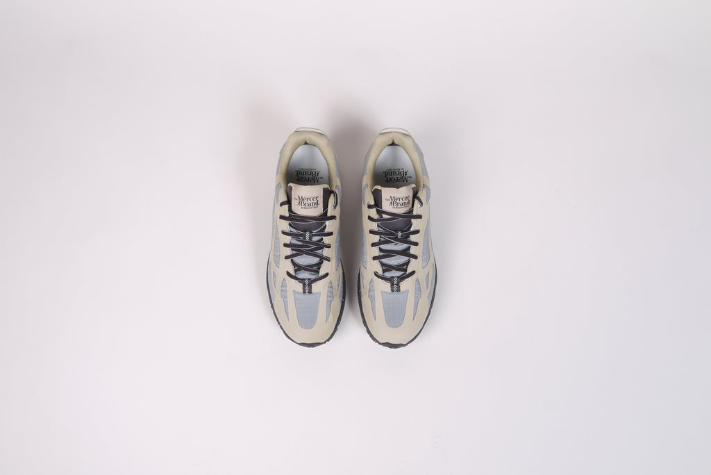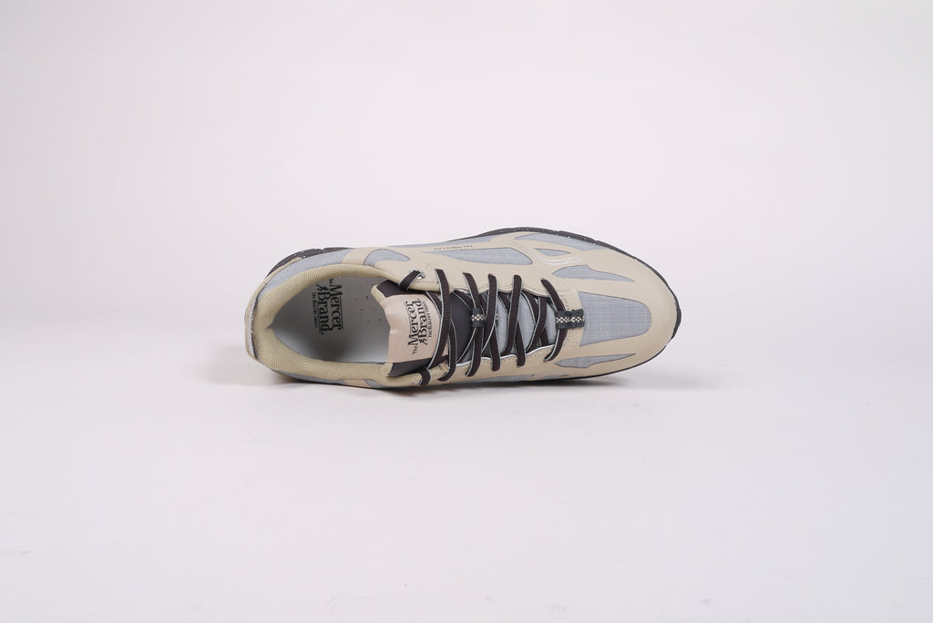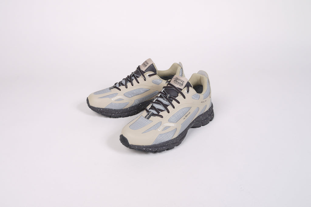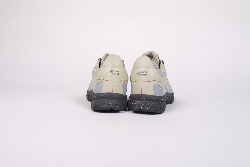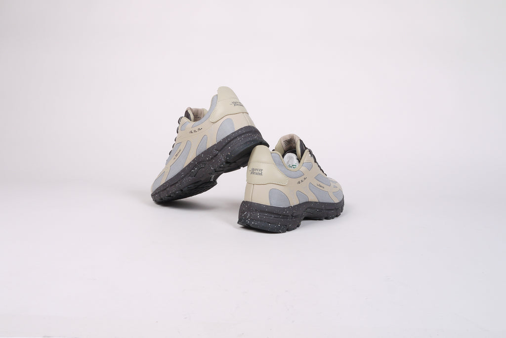 Mercer The Re-Run völlig neu interpretiert. Dieser nachhaltige Outdoor Sneaker besteht aus wasserdichtem Ripstop und einer eingespritzten TPU-Schicht auf der Oberseite und lässt keine Nähte offen. Die gesprenkelte Laufsohle unterstreicht die Outdoor-Inspiration zusätzlich.
