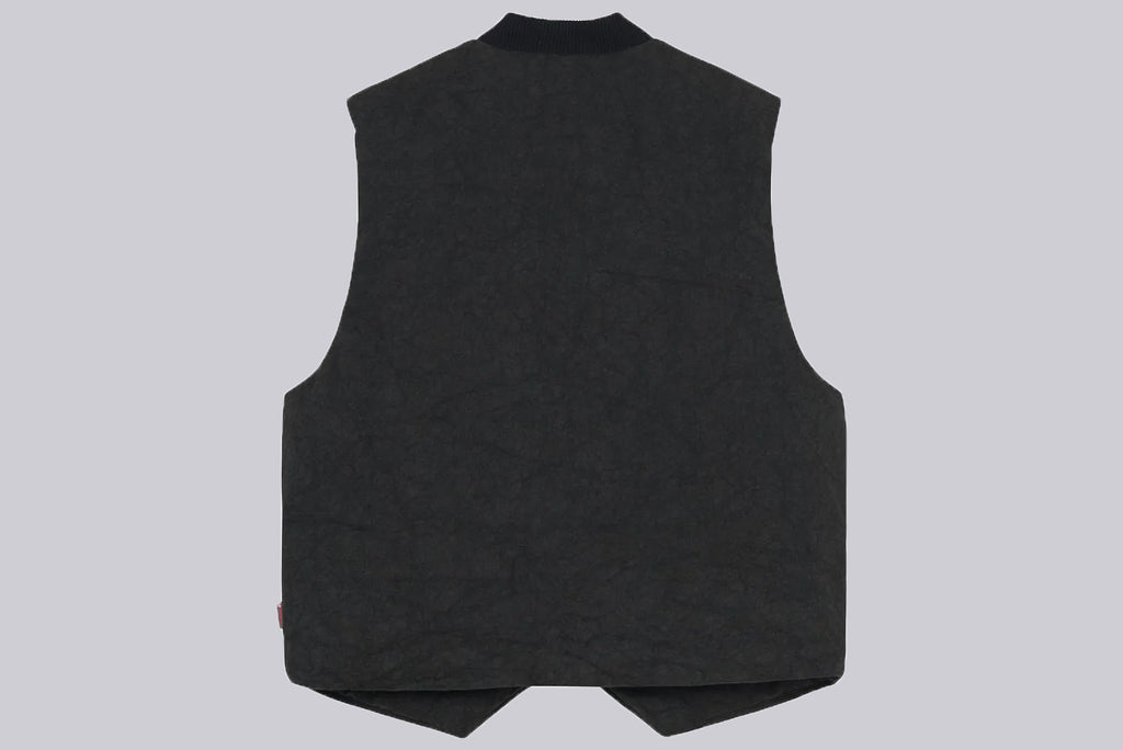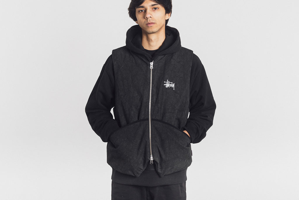 Stussy "Washed Canvas Primaloft" Vest in black. Logo embroidery on the left chest.