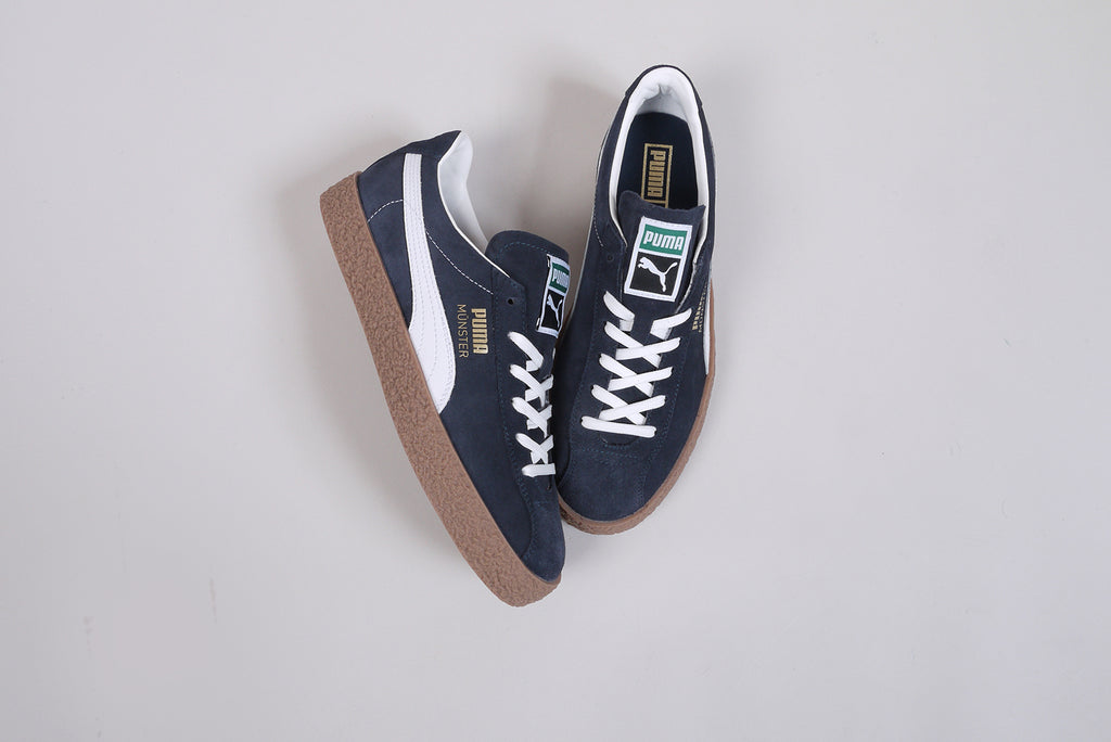 Launched in 1973 and named after the picturesque German town, the Muenster was a dedicated training shoe used for a variety of indoor sports such as volleyball. With its overlay toe, signature short toe box and rubber cupsole, the Muenster offers a classic look for everyone. The Puma Muenster OG is a premium pack in a suede upper that takes cues from the original from back in the day.