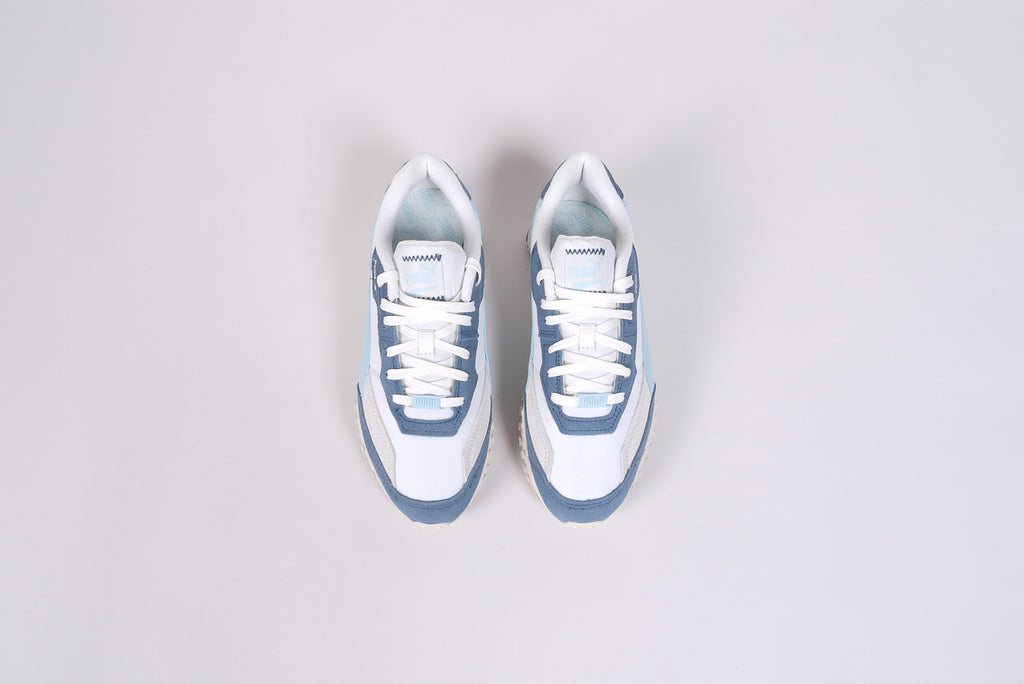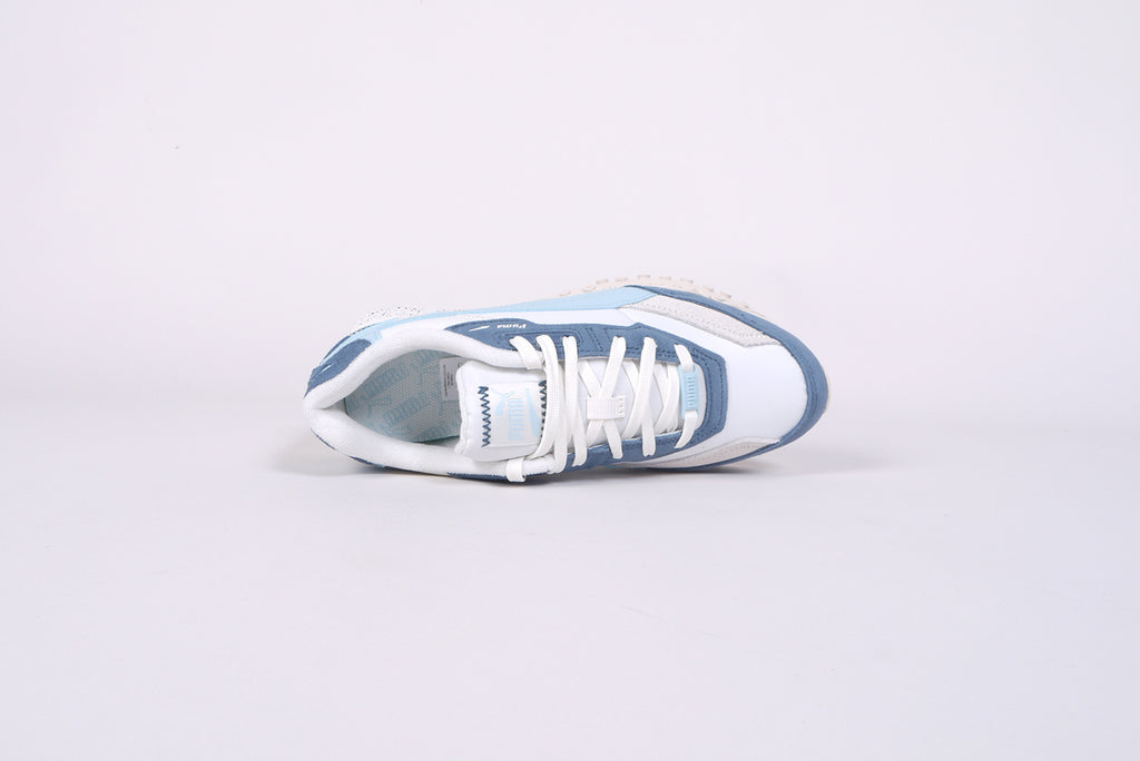 The Puma "Blktop Rider" for women in a beautiful blue/white/grey combination.